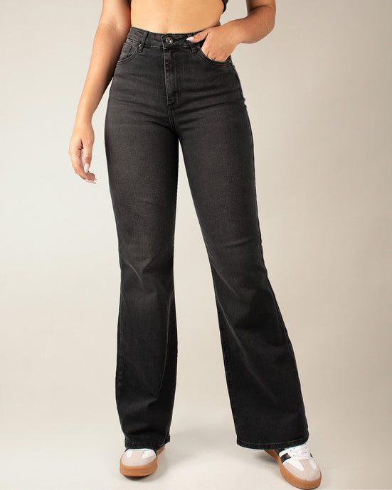 JEAN MOM FLARE STRETCH TIRO ALTO 4284